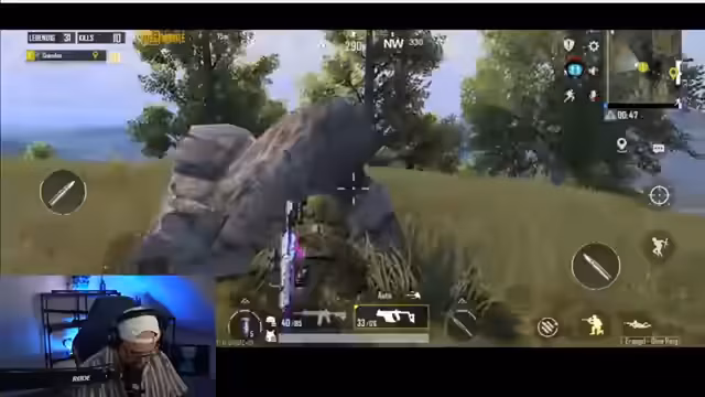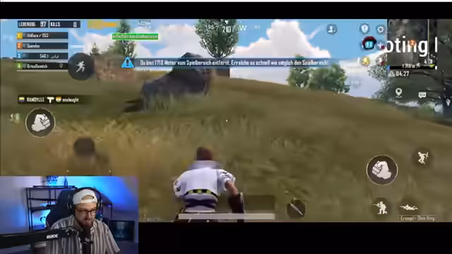 06:04:12Das eigentliche Sponsoring besteht im Spielen von PUBG Mobile auf einem Samsung Handy, das an den PC angeschlossen ist. Der Streamer preist sich selbst als den schlechtesten Spieler des Planeten outet und prophezeit ein 'krankes Cringe-Erlebnis'. Während des Spiels wird ein interaktiver Versuch unternommen, bei dem Zuschauer gebeten werden, bei jedem Kill eine entsprechende Chat-Nachricht zu schreiben, um den Eindruck zu erwecken, es seien echte Gegner.