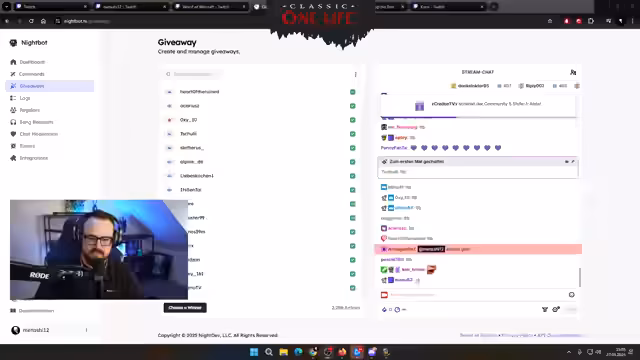03:58:59Nachdem der Streamer von einer kurzen Abwesenheit zurückkehrt, zieht er das erste Giveaway live aus. Gewinner ist 'Sir OP', der seit 6 Monaten gefollowt ist und die Bedingungen erfüllt hat. Der Streamer gratuliert ihm und weist ihn an, sich an den Mod quenern zu wenden, um den Gewinn zu erhalten. Direkt im Anschluss startet die Verlosung des Hardware-Giveaways von Turtle Beach. Die Teilnehmer müssen neu laden und das Keyword '!TB' in den Chat schreiben. Der Streamer betont, dass alle Chancen gleich sind und kein Sub- oder Status-Vorteil besteht.
