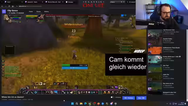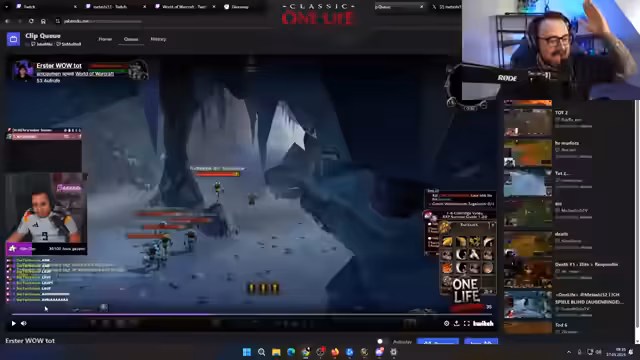 01:49:16Der Streamer nimmt sich Zeit, um den Clip des Todes von Sieglinde genau zu analysieren. Er vermutet, dass das Lesen des Chats während des Kampfes eine Hauptursache für den Tod war, da die Spielerin dadurch die Aufmerksamkeit verlor. Dies führt zu einer allgemeinen Diskussion über die Balance zwischen guter Interaktion mit dem Chat und der notwendigen Konzentration im gefährlichen Hardcore-Modus. Der Clip zeigt deutlich, wie schnell ein Fehler in WoW HC zum Tod führen kann.