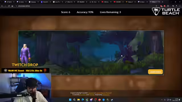 02:08:45Der Streamer spielt das Spiel 'Where in Warcraft', bei dem er Orte in 'World of Warcraft' anhand von Bildern erraten muss. Er schlägt eine Wette mit dem Chat vor: Wenn er 10 Orte am Stück schafft, muss ein Zuschauer einen Sub giften; wenn nicht, gibt er 20 Subs. Er zeigt beeindruckendes Wissen über die Spielwelt, insbesondere über Allianz-Gebiete, hat aber Schwierigkeiten mit Horde- und Nachtelfen-Gebieten. Die Wette eskaliert auf 40 Subs und dann auf 80 Subs, wobei der Streamer seine Spielsucht und den hohen Einsatz von 300 Euro thematisiert. Trotz einiger knapper Momente und Schwierigkeiten mit bestimmten Gebieten gelingt es ihm, 10 von 10 Orten zu erraten. Nach dem Gewinn schlägt er eine neue Wette vor: 10 von 10 oder er gibt 40 Subs, wobei er erneut seine Sucht und die Risikobereitschaft im Glücksspiel hervorhebt.