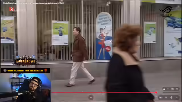 03:15:44Nach einem kurzen Exkurs zur veralteten Werbung von WoW wird eine kritische TV-Dokumentation über Computerspielsucht abgespielt. Diese zeigt extreme Fälle wie Jugendliche, die bis zu 16 Stunden täglich spielen, Schulabbruch und Beziehungsprobleme erleben. Der Streamer kommentiert die Darstellung als übertrieben dramatisch ('als hätte der seine ganze Familie abgestochen') und stellt sich schützend vor die Spieler: Er argumentiert, dass lang Gaming für viele ein legitimes Hobby sei, solange es keine anderen schädige. Er kritisiert Gesellschaft und Medien für die Stigmatisierung von Spielern und verweist auf positive Aspekte des Gamings.