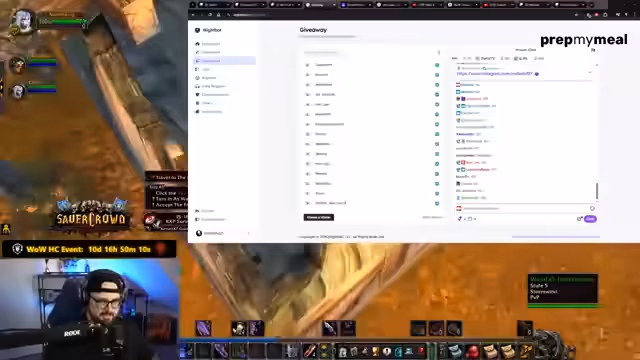 03:06:00Der Streamer kündigt ein großes Community-Giveaway an: Drei Mal zwei Monate kostenloser World of Warcraft-Spielzeit werden unter allen gefollowten Zuschauern im Chat verlost. Als Keyword muss '!key' eingegeben werden. Die Bedingungen werden klar kommuniziert: Nur gefollowte Zuschauer dürfen teilnehmen, unabhängig von Status (Mod, VIP, Sub). Das Giveaway soll in fünf Sekunden geöffnet werden und wird als Instrument zur Süchtigmachung beschrieben. Der Streamer betont die Fairness der Verlosung und seine Motivation, Zuschauer für das Spiel zu begeistern.