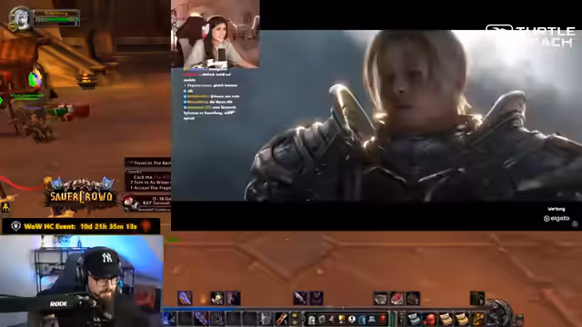 01:54:28Der Streamer zeigt und bespricht ausführlich mehrere World-of-Warcraft-Trailer, darunter Wrath of the Lich King und Battle for Azeroth. Er reagiert emotional auf die epischen Momente und lobt die bleibende Wirkung der sogar über 18 Jahre alten Videos. Parallel dazu wird die positive Performance von Streamern wie Freddy diskutiert, die zum ersten Mal WoW spielen. Es folgt ein ausführlicher, leidenschaftlicher Appell an die Zuschauer, WoW auszuprobieren, da es eine einzigartige, lebensverändernde Erfahrung biete – unterstützt mit Vergleichen zu monatlichen Kosten und argumentativ gegen Ablehnung.