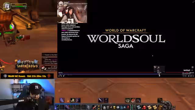 02:51:45Der Streamer zeigt zusätzliche Trailer, darunter Shadowlands und The War Within, und analysiert die Lore-Entwicklung. Besonders hervor gehoben wird der 'The War Within'-Trailer als qualitativ herausragend. Der Abschluss gilt dem SAUERCROWD TRAINING Event: Der Streamer appelliert erneut dringend an die Zuschauer, sich für das Event zu begeistern und WoW zu beginnen, um die Community zu erweitern. Ein letzter, auf Wunsch eines Zuschauers gezeigter Trailer rundet den Hype-Auftakt ab.