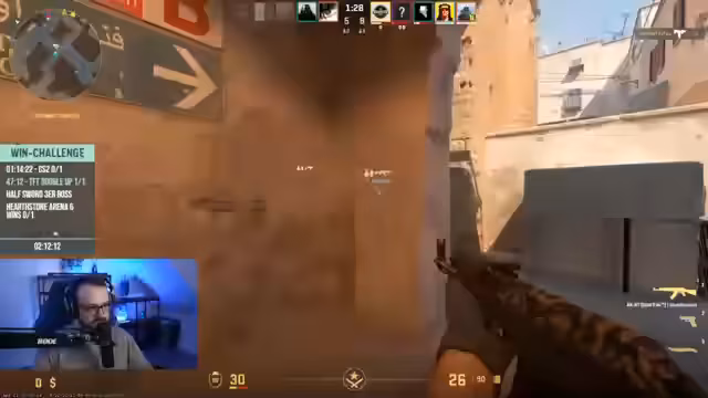 06:13:15Ein Versprechen, ein Ziel: Der Streamer und seine Mitspieler sind mitten in einer Gaming-Challenge, die volle Konzentration und Teamwork erfordert. Es geht ums Gewinnen, aber auch um den Spaß. Das gelingt nicht immer, wie anhand von Fehlern wie einem verpatzten Flanker-Manöver oder einer missglückten Rundenplanung deutlich wird. Die Stimmung ist von Anspannung geprägt, die Chancen auf einen Sieg scheinen schwinden, wenn wichtige Aktionen kläglich scheitern oder der Gegner überlegen scheint. Trotzdem werden Fehler analysiert und für die Runde darauf hingewiesen.