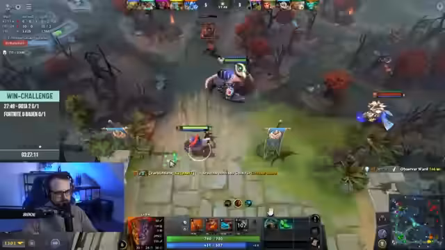 08:10:49Im weiteren Verlauf von Dota 2 vertiefen sich die Kämpfe. Die Streamer agieren nun als Team und versuchen, Gegner auf der Map zu eliminieren. Ein zentrales Thema ist die Rolle des Supports, der den stärkeren Carries mit Mana und zusätzlichen Fähigkeiten (wie Stuns) hilft. Es werden wichtige Spielmechaniken wie das Nutzen von Portalen, das Aufdecken von Gegnern durch Wards und das Sammeln von Runen besprochen. Das Spiel verläuft in Phasen, in denen die Streamer versuchen, den Gegner mit ihrer Fähigkeitenkombination (CC + Damage) zu überraschen und den Vorteil zu nutzen. Es kommt sowohl zu erfolgreichen Eliminierungen als auch zu Rückschlägen, wenn sich die Gegner clever verteidigen oder counter-aktionsfähige Champions haben.