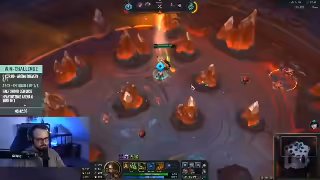 09:52:52Nachdem das Dota-2-Spiel beendet ist, wechselt der Streamer gemeinsam mit seinem Partner 'Frederik' zu League of Legends: Arena. Es ist eine Runde in der 'Challenge'-Modus, bei der die Paarung so lange wie möglich durch Siege in den 'First Runden' bestehen muss. Streamer und Partner treffen hier auf starke Konkurrenten und bemerken, dass andere Teams bereits 'double-tapfert' haben, also zwei Spiele in Folge gewonnen haben. Trotz der Herausforderung bleibt der Fokus darauf, den ersten Sieg in dieser neuen Runde zu erzielen.