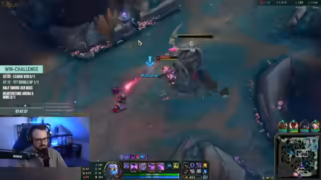 11:59:23Nach der persönlichen Unterhaltung kehren die Streamer zu League of Legends zurück und spielen Malzahar mit einem neuen Skin. Der Fokus liegt auf dem taktischen Gameplay und der Synergie der Champions. Der Streamer betont seine Freude am Spiel und am gemeinsamen Tryharden, besonders während der Win-Challenge.