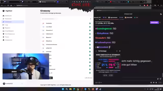 02:48:08Die genauen Bedingungen für das 50 Euro-Giveaway werden nun offiziell bekannt gegeben. Die Teilnahme ist nur für Follower des Kanals möglich. Diese müssen das Keyword '!50' in den Chat schreiben und die Ziehung am Ende des Streams abwarten. Alle anderen Kriterien wie Sub-Status oder Chat-Moderation sind irrelevant, um allen eine gleiche Chance zu geben. Dies unterstreicht den Fokus auf die reine Community-Teilnahme ohne Privilegien.