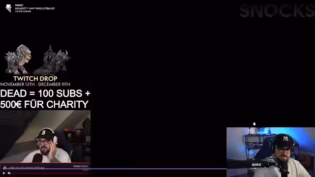 08:48:44Für morgen (Donnerstag) wird der Stream abgesagt, da stattdessen am Freitag ein langer Stream (ab 8 Uhr) mit einem WoW-Quiz-Format gemeinsam mit Henno und Kutscher geplant ist. Am Samstag findet von 8 bis 20 Uhr ein 12-stündiger Charity-Stream für Kinder ohne Weihnachtsgeschenke statt, bei dem Spenden gesammelt werden. Dafür werden Kooperationen mit KDR-Kitten und möglicherweise Rumatra angekündigt.