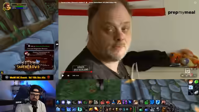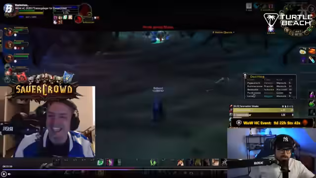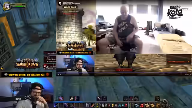 05:26:46Es wird ein Hardcore-WoW-Event geplant, bei dem Teilnehmer bis Level 60 leveln müssen. Ein Streitpunkt ist die Besetzung des Main-Tank-Platzes: Der Streamer fordert die Position, wird aber von anderen Streamern herausgefordert. Ein Duell als Lösung wird diskutiert, aber als riskant bewertet, da ein Charakter bei Tod verloren geht.