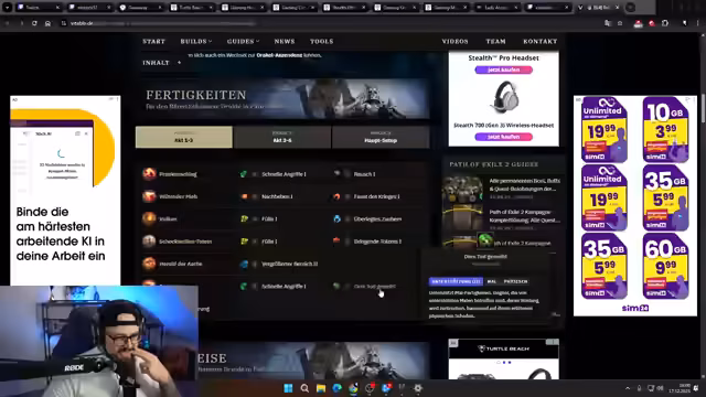 07:57:24Der Streamer spielt den Druiden in Path of Exile 2 und diskutiert dessen Stärken, insbesondere die hohe Überlebensfähigkeit und den Schaden der Bärenform. Er erwähnt ein geplantes Giveaway für Founders Packs oder exklusive Items von der Gamescom, das in etwa 45 Minuten stattfinden soll. Dabei interagiert er mit dem Chat, der sich für Follows und Resubscriptions bedankt und erklärt, dass er nachfragt, ob die Community an einem solchen Giveaway interessiert wäre.