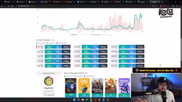 04:21:38An Weihnachten (24.12.) und Silvester (31.12./1.1.) wird rund-um-die-Uhr gestreamt, um einsamen Zuschauern Gesellschaft zu leisten. Der Streamer appelliert an die Community, niemand solle allein feiern. Persönlich gibt er zu, durch den WoW-Grind und ungesunde Ernährung zugenommen zu haben, priorisiert aber das Event vor einer Ernährungsumstellung. Ein Büro-Update zeigt den neuen Lich-King-Schwert-Nachbau und feiert finanzielle Erfolge (z. B. Stream Awards).