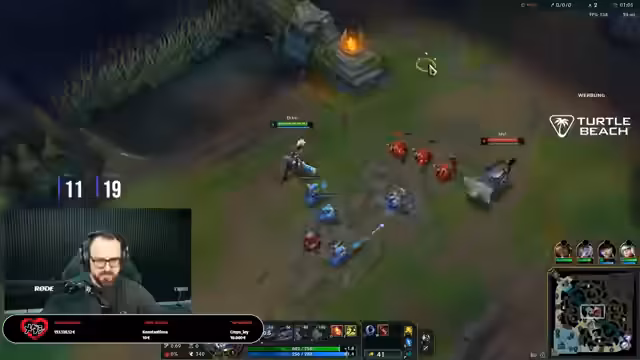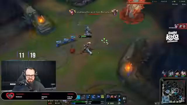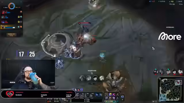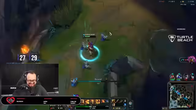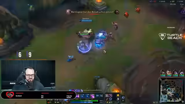04:15:42Das Match startet turbulent, wobei das Team schnell in einen Rückfall gerät und früh das erste Blut an der Top-Lane hinnehmen muss. Trotz anfänglicher Schwierigkeiten kämpft sich das Team zurück, und der Streamer agiert mit Zed sehr erfolgreich. Er feiert mehrere Kills und das gute Gameplay, besonders begleitet von Musik, die er als motivierend beschreibt. Die Gegner-Team, bestehend aus Syndra und Brand, wird als sehr aggressiv und tanky wahrgenommen, was strategische Anpassungen wie das Placen von Pink Wards notwendig macht, um deren Bewegungen zu kontrollieren. Das Spiel bleibt bis zum Ende spannend und ausgeglichen.