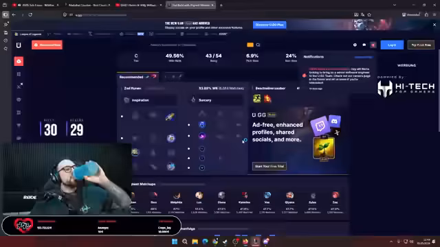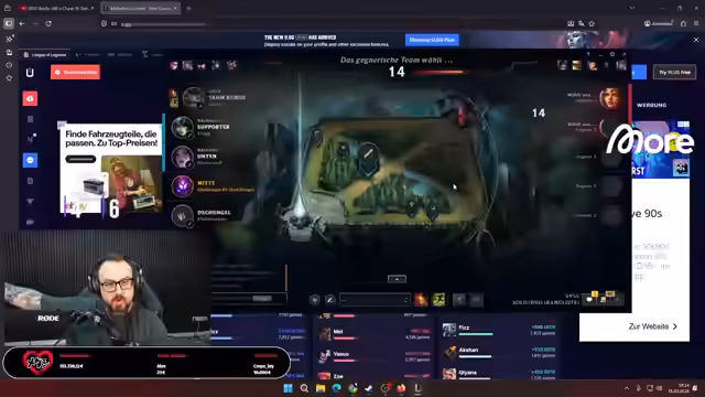 03:43:04Der Streamer startet ein neues League of Legends-Spiel mit dem Champion Zed in der Top-Lane. Es ist das erste Mal, dass er diesen Charakter auf dieser Position spielt. Er sucht sich einen Guide, um die Item-Build und die Fähigkeiten-Reihenfolge zu lernen und bereitet sich auf das Spiel vor.