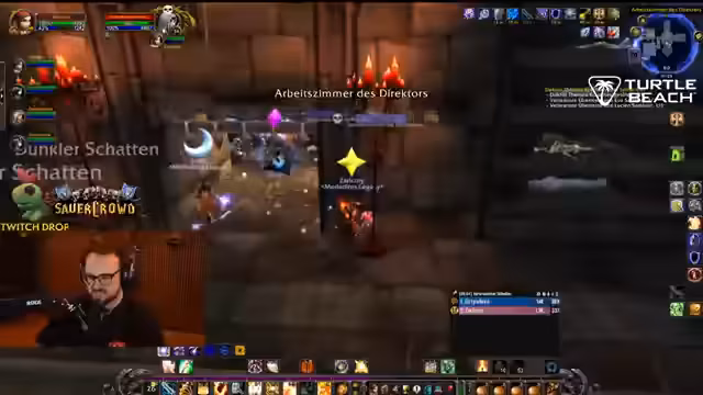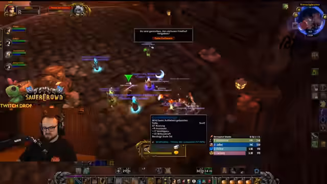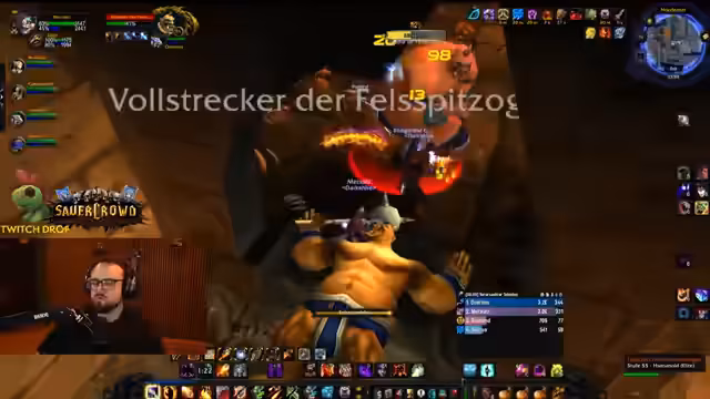 07:29:53Nachdem die ersten Monstergruppen erfolgreich besiegt wurden, geht es tiefer in den Dungeon. Der Streamer als Hexenmeister bemerkt, dass seine Aggro-Kontrolle mit der Zeit besser wird. Der Healer hält ihn permanent am Leben, was es ihm ermöglicht, seinen Schaden voll auszuschöpfen. Es wird der Boss namens "Totenkopf" ins Visier genommen, der für seine hohe Rüstung und diverse Fähigkeiten bekannt ist. Die Gruppe beschließt, diesen Boss zuerst zu bekämpfen, um das Risiko zu minimieren. Die Kommunikation und das Zusammenspiel zwischen den Spielern wird als sehr gut beschrieben.