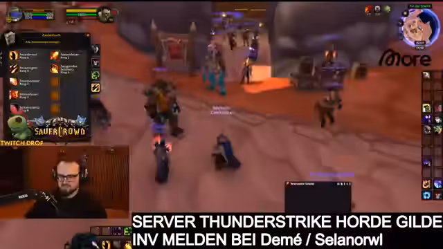 00:49:41Während die Allianz-Gilde startklar ist, fällt dem Streamer auf, dass er für die Horde-Seite noch kein Gold hat. Er reagiert gelassen und beschließt, sich darum zu kümmern, indem er Gold transferieren oder farmen will. Er kündigt an, dass die Horde-Fraktion nachmittags gegen 15:00 Uhr gestartet werden soll und sucht erneut nach Support bei der Gildeinführung. Er zeigt sich amüsiert von den verschiedenen Klassen, die von der Community aufgebaut werden, insbesondere den Schamanen.