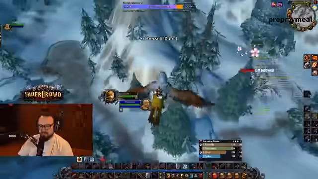 19:17:06Nach einer kurzen Mini-Break befindet sich der Streamer auf dem Flug nach Ironforge. Er plant, drei Kreuze vom Wartezimmer-Spiegel zu entfernen, um sich für den Dungeon vorzubereiten. Er grüßt einige Stream-Zuschauer wie Spark und Fruitroot und ist erleichtert, dass Sly, den er zuvor für eine gemeinsame Auswanderung in Betracht gezogen hatte, doch noch im StreamTogether ist und nun als Mitglied der Gruppe agiert. Es wird eine Wette angestoßen, ob jemand im Dungeon sterben wird.