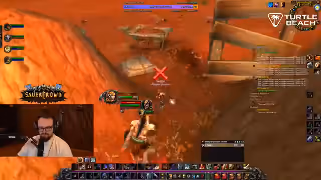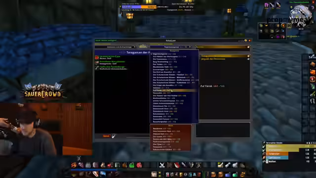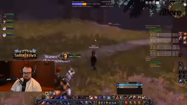 06:04:40Während der Reise zu den nächsten Dungeons machen die Helden einen kurzen Zwischenstopp. Es wird eine Horde-Questline erwähnt und eine Begegnung mit einem seltenen Mob beschrieben, der beinahe zum Tode des Streamers geführt hätte, aber dennoch eine gute Chance auf wertvollen 'Blue' Loot bietet. Das Gameplay ist geprägt von spontanen Entscheidungen und dem Erkunden der Spielwelt. Es ist ein kleiner, aber chaotischer Moment der Entspannung vor dem Großangriff auf die Dungeons, der die Energie des Streamers und der Gruppe aufrechterhält.