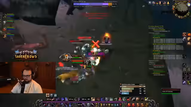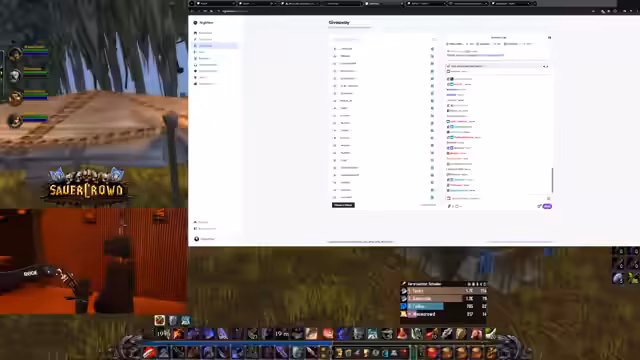 03:38:24Der Streamer geht auf die Bewerbungsphase für das SAUERCROWD Event ein. Er gibt an, dass noch ein bis zwei Zeit für Bewerbungen auf Social Media bleibe und dass die Auswertung bald beginnen werde. Interessierte könnten sich über den Hashtag #SauerkrautBewerbung bewerben. Gleichzeitig wird die Größe der Community thematisiert, mit über 2000 Leuten auf dem Discord-Server und über 800 Spielern in den Community-Gilden, was als beeindruckend wahrgenommen wird.