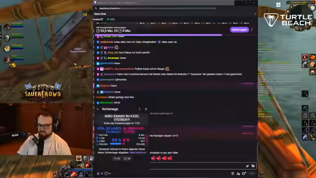 14:25:04Es findet eine Diskussion über die Teilnahme an einem Community-Event statt, bei dem der Streamer überlegt, eine Person einzuladen, was zu Konflikten innerhalb seines Teams führen könnte. Parallel läuft ein größeres Giveaway für Turtle Beach-Produkte wie Headsets, Gamecontroller und Tastaturen. Die Teilnahmebedingungen sind klar definiert: Ein Follow im Chat und das Erwähnen von '!TB' sind notwendig. Der Streamer präsentiert die Auswahlmöglichkeiten und betont, dass die Gewinner direkt im Chat kontaktiert werden müssen. Die Spannung steigt, als der Gewinner gezogen wird.