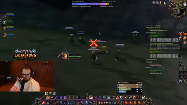 02:53:28Nach dem Tod von Kuba wird das Gameplay fortgesetzt. Der Streamer probiert als Priester einen gelben Mob, was sich als problematisch herausstellt, da die Fickviecher viel Mana verbrauchen und sich schnell mehr Gegner hinzugesellen. Es kommt zu einem Kampf mit drei Gegnern, der tödlich endet. Im Anschluss diskutiert der Streamer über Spielmechaniken wie das Erledigen von Elitemobs auf niedrigem Level und stellt fest, dass sie im Grind-Modus sind, was zu einem motivierenden 'Life is fucking good'-Ausruf führt. Auch die Level-Entwicklung von Hahn und das Droppen eines Epic-Items werden thematisiert.