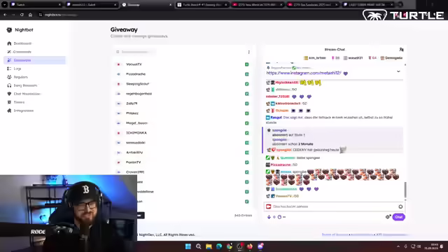 03:12:02Es wird das 50-Euro-Giveaway ausgelost. Der Gewinner ist Kirschblütenfuchs. Es wird das nächste, größere Giveaway angekündigt, bei dem Hardware von Turtle Beach im Wert von bis zu 330 Euro verlost wird. Der Gewinner darf sich alles aussuchen, egal ob Tastatur, Maus, Headset oder Controller. Die Teilnahme erfordert die Eingabe von '!TB' im Chat. Es wird betont, dass alle Teilnehmer die gleichen Gewinnchancen haben.
