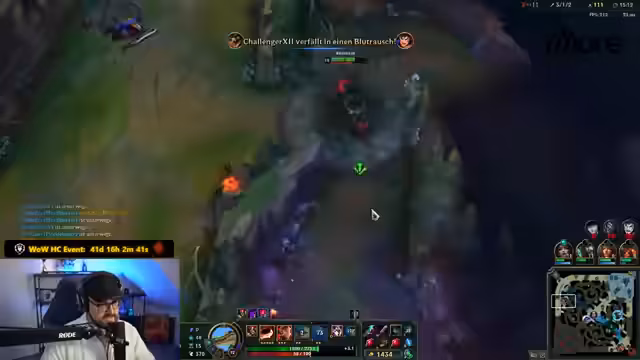 05:08:06Das Spiel wird erneut gedodged, was den Streamer frustriert, da er dringend auf die Toilette muss. Es wird über die gegnerische Champion-Auswahl spekuliert, wobei Karma Bot und Volibear Midlane als Möglichkeiten genannt werden. Syndra wird als gute Wahl für Niki hervorgehoben, um gegen Lane-Bullys zu bestehen und im Late Game viel Schaden zu verursachen. Der Streamer hält eine motivierende Rede und betont, dass dieses Spiel Geschichte schreiben wird. Er ist motiviert, aber immer noch dringend auf Toilette. Es wird über die Runen und die Wahl von Ignite für Teemo gesprochen. Der Streamer ist entschlossen, Willi zu dominieren und 15-0 aus dem Spiel zu gehen, obwohl er befürchtet, dass das gegnerische Team die Top-Lane ganken wird. Er ist frustriert über die gegnerische Teamzusammenstellung. Der Streamer wettet 25 Subs auf einen Sieg. Die Champion-Auswahl wird finalisiert, wobei Zed Top-Lane und Maokai Jungle als ungewöhnliche Picks des Gegners festgestellt werden. Es wird über Item-Builds und eine mögliche Invasion gesprochen, die aber gegen Blitzcrank zu riskant wäre. Das Team entscheidet sich für eine ruhige Botlane und Roams der Supports. Der Streamer lobt Tunny und spekuliert über die Startpositionen der Gegner. Das Spiel beginnt, und es kommt zu ersten Gefechten und Fehlern. Der Streamer ist frustriert über einen frühen Tod, bleibt aber optimistisch.