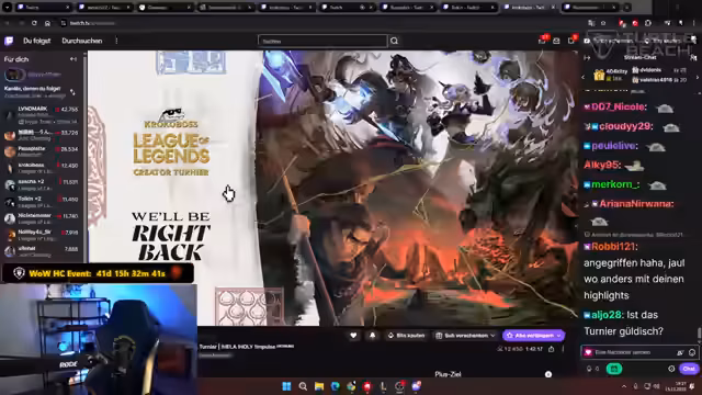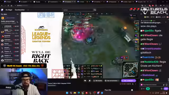 00:39:23Der Streamer kündigt ein aufregendes Wochenende an, das ganz im Zeichen des League of Legends Krokoboss Content Creator Turniers steht. Er betont die Bedeutung des Events und die Absicht, das Turnier auf den Kopf zu stellen. Bevor jedoch ins Detail gegangen wird, bittet er die Zuschauer, ihre Unterstützung im Chat zu zeigen. Dieses Turnier wird das gesamte Wochenende stattfinden und verspricht spannende Matches. Es ist ein wichtiges Event für den Streamer und seine Community, das die kommenden Tage prägen wird.