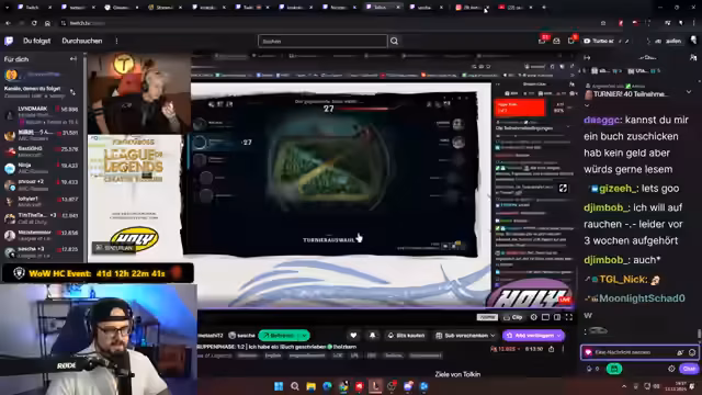 00:30:35Der Stream beginnt mit einer humorvollen und umgangssprachlichen Begrüßung der Community. Der Streamer stellt das bevorstehende Krokoboss League of Legends Creator Turnier als das Hauptevent des Wochenendes vor und beschreibt es als eine Möglichkeit, den Inhalt auf den Kopf zu stellen. Er betont, dass der gesamte Fokus auf dem Turnier liegt und lässt bereits gesichtete Unterstützer, Follower und Subs vorab im Chat aufrufen, um sie zu würdigen.