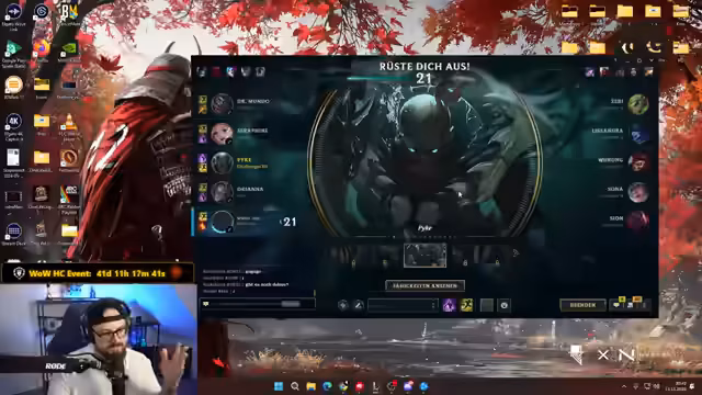 04:54:17Die Teammitglieder sprechen über ihre Nominierungen für Stream Awards und die Möglichkeit, ihren Sieg in Köln zu feiern. Der Streamer erinnert daran, dass man noch abstimmen kann. Die Vorbereitungen für das nächste Spiel werden fortgesetzt, und es wird über die Bann-Phase gesprochen. Der Streamer überlegt, einen Malzahar-Skin zu kaufen, befürchtet aber, dass Malzahar gebannt wird. Die Banns werden erneut besprochen, wobei Lux und Seraphine als mögliche Ziele genannt werden. Der Streamer muss dringend auf die Toilette, weigert sich aber, vor dem Spiel zu gehen. Es wird scherzhaft über eine „Pisschublade“ gesprochen. Die Gegner bannen Malzahar, was den Streamer überrascht und empört. Er bezeichnet es als „Metagaming“ und „unverschämt“. Es wird überlegt, welche Champions stattdessen gespielt werden sollen, und Teemo wird als Option in Betracht gezogen. Die Teammitglieder diskutieren über die besten Picks und die Notwendigkeit, einen Tank für das Team zu haben. Der Streamer entscheidet sich für Teemo und Zed, während ein anderer Spieler Pyke vorschlägt. Die Champion-Wahl ist chaotisch, aber das Team ist entschlossen, Spaß zu haben.