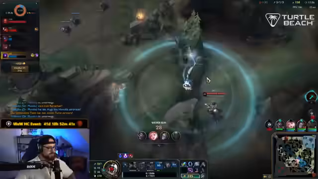 03:58:50In der aktuellen Spielphase herrscht Frustration über die eigene Leistung und die Entscheidungen der Gegner. Der Champion des Gegners auf der Top-Lane wird als stark und überlegen empfunden, ist jedoch laut dem Streamer noch nicht im 'broken' Zustand, da er wichtige Items fehlen. Der Fokus liegt auf der Kontrolle der Drachen und dem Aufbau von Druck auf der Map, wobei der Streamer um Hilfe an der Drachenseite bittet und die Notwendigkeit von koordinierten Bewegungen der Teammitglieder betont. Ein fehlgeschlagener Drachen-Fight führt zu einem Double-Kill für das gegnerische Team und schwächt das eigene Team erheblich.