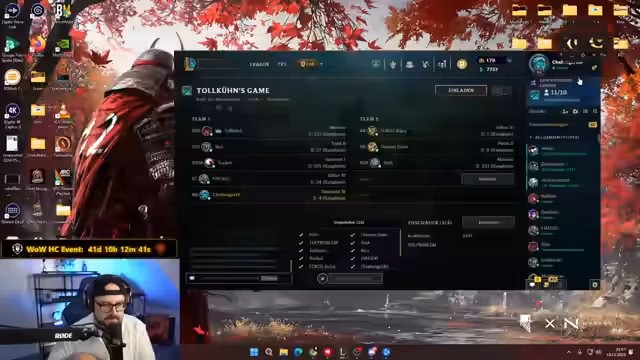 04:30:24Der Streamer kündigt an, kurz eine Pause einzulegen, bevor er sich voll und ganz dem anstehenden League of Legends-Turnier widmet. Er bemerkt scherzhaft, dass er öfter Pausen macht, als er Creeps farmt, und prognostiziert einen langen Stream bis 22 Uhr. Es wird auch über World of Warcraft gesprochen, und der Streamer wundert sich über die Augenringe von Tolkien, einem Mitspieler, der anscheinend seit 15 Jahren League of Legends spielt. Eine Diskussion über das Alter und die Spielerfahrung in League of Legends entbrennt, wobei der Streamer und Tolkien über ihre Anfänge im Spiel sprechen. Der Streamer erinnert sich an seine Schulzeit und das gemeinsame Botlane-Spiel mit einem Freund. Es folgen humorvolle Bemerkungen über Altersunterschiede und die Frage, ob man Farbfernsehen noch erlebt hat. Die Atmosphäre ist locker und von gegenseitigem Necken geprägt, während auf den Start des Turniers gewartet wird.