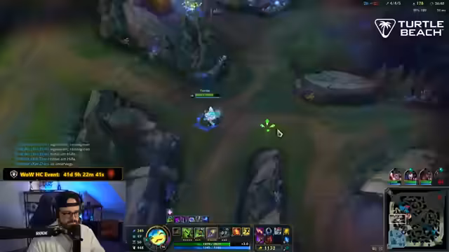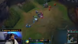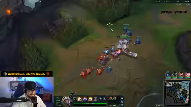 01:15:10Das Spiel beginnt mit technischen Problemen, da sich der Host selbst aus dem Spiel entfernte und neu starten musste. Das eigene Team kämpft auf der Top-Lane gegen einen starken Rengar und einen Cho'Gath. Es wird viel über das Gameplay kommuniziert, wobei besonders die fehlenden Items im Early-Game und das daraus resultierende geringe Level der Spieler ein zentrales Thema sind. Die Teamkameraden werden ermutigt, ihre Wellen zu pushen und gemeinsam zu skalieren.