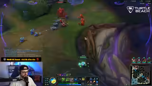 09:08:41Ein strategischer Zug im Top-Lane wird eingeleitet, um den Turm zu nehmen. Die Wave wird gedrückt, um Turmdruck auszuüben und dabei zu überleben. Das Team plant, den Turm zu nehmen, falls die Gegner nicht reagieren. Ein Mitglied des Teams positioniert sich weit hinter dem Turm, um eine Überraschung zu ermöglichen. Der Turm ist fast besiegt, doch die Gegner geben den Turm auf, und das Team kann den Vorteil nutzen. Nach einem Kampf wird der Herald als Nächstes ins Auge gefasst.