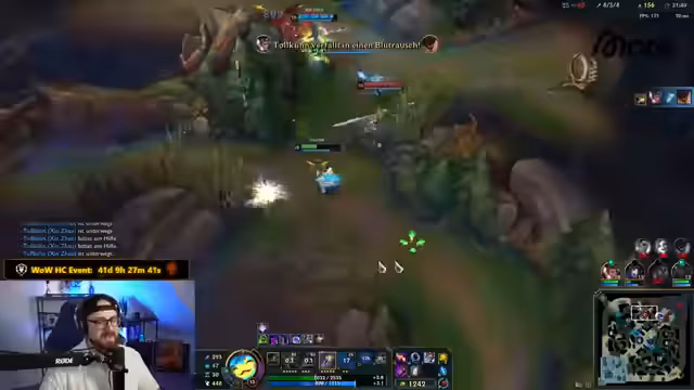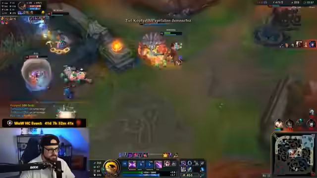 01:23:24In der frühen Phase des Spiels diskutiert das Team über die Championauswahl und Strategien gegen Grandmaster-Spieler. Es wird erwähnt, dass 'Goobies' gesammelt werden müssen, um einen Vorteil zu erzielen. Die Kommunikation im Team ist entscheidend, besonders bei Ganks und der Sicherung von Objectives. Währenddessen wird der Streamer von einem 'Schorath' verfolgt und muss sich zurückziehen, um Items zu kaufen. Es gibt eine kurze Unterbrechung durch einen 'Early DC', der jedoch schnell behoben wird. Die Teammitglieder versuchen, die Gegner zu baiten und nutzen die Gelegenheit, um den Drake zu sichern. Trotz einiger Rückschläge und der Schwäche einzelner Spieler aufgrund fehlender Items, bleibt das Team optimistisch und plant, gemeinsam den Harald zu sichern.