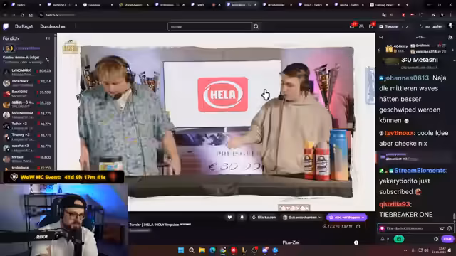 07:12:44Es wird ein herzlicher Dank an die neuen Follower ausgesprochen, darunter Way2Hard, Cerberus, Edgy, Rektibum, Betacore, Lugash, Lauri, Eto, Waidi, Zarakiel, Maislover, Luigi, Stoffgesicht, Tic2 und Lugi. Auch Kolaini wird für fünf Sub-Gifts gedankt. Der Streamer nutzt die Gelegenheit, seinen Partner 'Prep My Meal' zu bewerben, insbesondere die Protein-Pizza mit 90 Gramm Protein, die als die beste Tiefkühlpizza beschrieben wird. Es wird betont, dass er nichts für die Pizza bezahlt hat. Er erwähnt auch, dass er während 'Craft Attack' 14 Tage lang dabei war. Es wird ein Giveaway angekündigt, bei dem zwei Gewinner gezogen werden, die sich innerhalb von drei Sekunden bei einem Mod melden müssen. Der Streamer drückt seine Dankbarkeit für die Unterstützung aus, die es ihm ermöglicht, League of Legends zu spielen und dabei zu essen. Er empfiehlt auch die XXL-Gerichte von 'Prep My Meal', insbesondere die Reispfanne mit Hähnchen, Gemüselinsenlasagne und ein Gericht mit Lachs, Bohnen und Reis. Er betont, dass er nicht lügt und nur Produkte empfiehlt, die er selbst probiert und für gut befunden hat. Er ermutigt die Zuschauer, den Link von 'Prep My Meal' zu besuchen und sich umzuschauen, ohne zum Kauf zu drängen. Er erwähnt, dass er 10% Provision erhält, wenn sein Link verwendet wird. Des Weiteren wird 'Moor' als Partner beworben, dessen Riegel und Soßen gelobt werden. Er hat auch die Limonade von 'Moor' probiert, warnt aber vor übermäßigem Konsum aufgrund der Ballaststoffe.