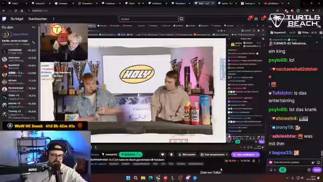 02:16:40Tolkien, einer der Spieler, hat ein Buch mit dem Titel 'Behind the Screens, E-Sport Gaming und die objektiv beste Community' veröffentlicht, das bereits Bestseller Nummer 1 bei Amazon ist. Das Buch behandelt seine Profikarriere, Höhepunkte, Rückschläge und Insiderwissen über die E-Sport-Branche. Die anderen Spieler zeigen sich beeindruckt und scherzen über eigene Buchprojekte. Einer der Spieler überlegt, ein Buch über World of Warcraft zu schreiben, mit einem Charakter und einer Geschichte, die seinen eigenen Jargon widerspiegelt. Diese Diskussion lockert die Stimmung vor dem Spiel auf und zeigt die persönlichen Interessen der Streamer abseits des Gameplays. Die Vorfreude auf das Spiel ist spürbar, und die Spieler versuchen, sich gegenseitig zu motivieren und ihre Strategien zu festigen.