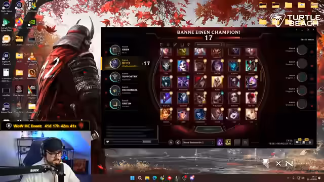 04:40:34Die Bann-Phase beginnt, und es wird überlegt, welche Champions gebannt werden sollen, um den Gegnern keinen Komfort zu bieten. Es wird diskutiert, ob man gegen Sertorius Midlane-Bannen sollte, obwohl er ungewöhnliche Champions wie Sett und Illaoi gespielt hat. Der Streamer ist überrascht, dass man in der Lane Kall und Dorans-Items kaufen darf. Es werden weitere Bann-Vorschläge gemacht, darunter Seraphine und Lux, da Phoebe angeblich nur Lux spielen kann. Die Strategie, die Silberspieler zu fokussieren, wird in Frage gestellt, da Sertorius zu viele Champions beherrscht. Es wird argumentiert, dass die Elo bei vielen Spielern, die nicht oft spielen, relativ egal ist und es darum geht, Charaktere zu spielen, die man kennt. Der Streamer wird ungeduldig und möchte endlich mit Malzahar spielen, muss aber auch dringend auf die Toilette. Es wird ein Deal gemacht: Wenn das Team verliert, muss der Streamer sich im Stream einnässen. Die Diskussion über die Banns geht weiter, und es wird entschieden, Evelyn zu bannen, da das Team viele Squishys hat.