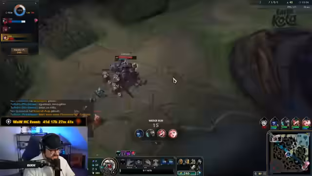 04:44:32Der Streamer liest einen Chat-Kommentar vor, der Malzahar Toplane als „Hardcore Int“ bezeichnet, und stimmt scherzhaft zu. Er betont seine Nähe zum Chat und die Wichtigkeit des Zusammenhalts. Die Aufregung steigt, als das Team in die Warteschlange für das nächste Spiel kommt. Es wird als entscheidendes Spiel bezeichnet, das die Stimmung komplett drehen kann. Bei einer Niederlage droht die Stimmung komplett zu kippen. Der Streamer möchte endlich mit Malzahar ins Spiel, überlegt aber auch, Teemo zu spielen. Tolkien wird gefragt, ob es besser ist, Champions mit geringer Reichweite zu spielen, und bestätigt, dass es wichtig ist, dass Tashi seine Komfort-Picks spielt. Es wird erwähnt, dass Willi, ein Gegner, möglicherweise gemutet wird, und das Team hofft, dass die Gegner ebenfalls zweimal verloren haben, um ein „Keller-Duell“ zu haben. Der Streamer betont die Wichtigkeit, Spaß zu haben, und die Konzentration auf den Sieg.
