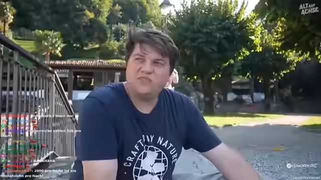 05:06:03Die Gruppe begibt sich auf die Suche nach dem Drogen-Hotspot von Italien am Comer See, um herauszufinden, warum die Leute dort so abhängig sind. Es wird festgestellt, dass die Hose des Streamers mittlerweile komplett durchnässt ist, was zu einem unangenehmen Gefühl führt. Es wird kurz überlegt, ob trockene Kleidung gebracht werden kann, aber aufgrund von Planungsfehlern und Parkplatzproblemen wird diese Idee verworfen. Stattdessen wird die Option diskutiert, dass der Chat durch Subs den Kauf einer neuen Hose finanzieren könnte. Es wird humorvoll über die Möglichkeit gesprochen, eine passende Hose in der Umgebung zu finden, selbst wenn es sich um Umstandsmode handeln sollte.