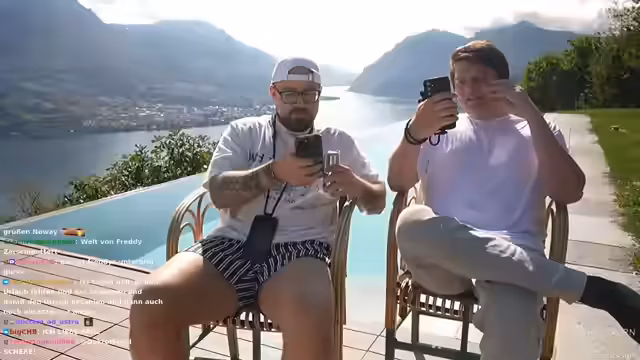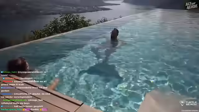 01:11:08Der Stream beginnt mit einer entspannten Pool-Session, bei der die Streamer mit einer Drohne gefilmt werden. Es wird über die Helligkeit des Displays und die Funktion eines ND-Filters diskutiert. Es folgt ein kurzer Tauchgang, bei dem ein Streamer seine Brille benötigt und Witze über die PC-Bräune gemacht werden. Der Chat wird nach Meinungen gefragt, ob eine bestimmte Strecke im Pool getaucht werden kann. Es werden Tauchversuche unternommen, gefilmt mit der Drohne. Die Streamer scherzen über die Ernsthaftigkeit anderer Poolbesucher und vermuten, dass diese vielleicht einen Überfall erwarten. Ein Anruf beim Bootsverleih wegen der Kajakbuchung wird thematisiert, wobei es um das Gewicht der Teilnehmer geht. Es wird ein Datingformat für Jan angekündigt, bei dem Frauen sich anonym bewerben können. Jan soll zur Unterhaltung tauchen, während die Bewerbungen gesichtet werden.