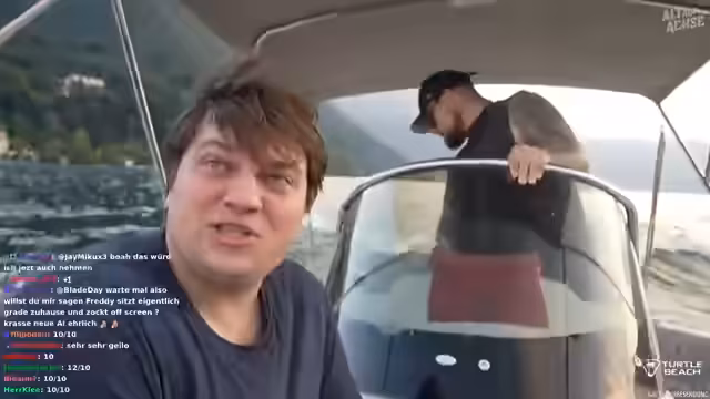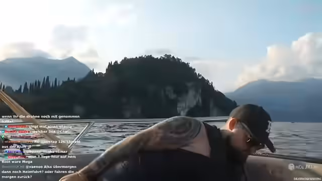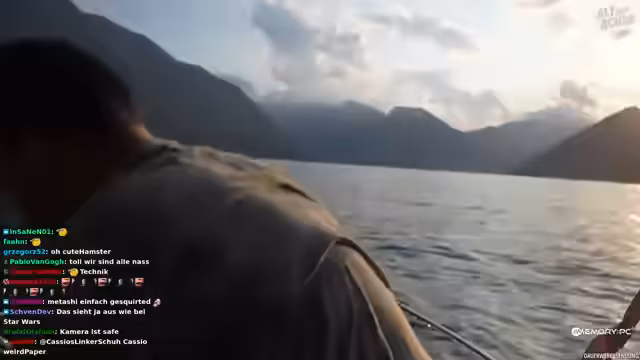 08:11:11Die Gruppe nähert sich der Star Wars Insel und freut sich auf die Ankunft. Es wird erwähnt, dass viele Leute dort campen und zuschauen, möglicherweise Streamsniper. Während der Fahrt gibt es eine brenzlige Situation mit einer grossen Welle, die das Boot fast kentern lässt. Die Gruppe übersteht die Situation unbeschadet und setzt die Fahrt fort. Es wird beschlossen, umzukehren, da das Boot bald abgegeben werden muss. Die Kamera wird gereinigt und die Fahrtrichtung korrigiert. Ein Kommentar im Chat sorgt für Erheiterung, in dem jemand bemerkt, dass das Boot nicht so laut sei wie die Freundin eines Zuschauers. Es wird kurz über Drogenkonsum gescherzt, bevor die Fahrt fortgesetzt wird. Es wird überlegt, ob man die Drohne für Aufnahmen einsetzen soll, aber aufgrund der schwierigen Landebedingungen wird davon abgesehen.