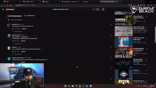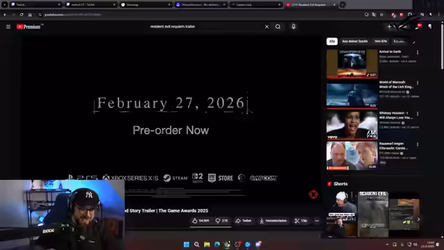 02:46:54Metashi12 zeigt mehrere Resident Evil Requiem Trailer und kommentiert sie lebhaft. Er erwähnt, dass er das Spiel bereits für eine Stunde spielen durfte und beschreibt die Atmosphäre als gruselig, aber spannend. Parallel kündigt er ein Giveaway für Phantom Blade Zero an und informiert über verschobene WoW-Anfänger-Streams, die nun um 14 Uhr mit Jenyan und Dalu Card stattfinden werden. Die Resonanz auf die Trailers mit über einer Million Aufrufe wird diskutiert, wobei die Meinungen bezüglich des Spielgefühls auseinandergehen.