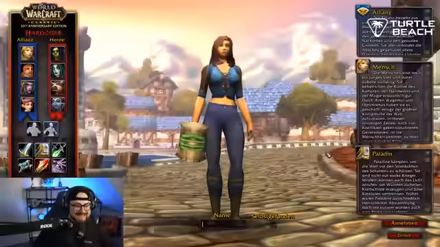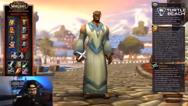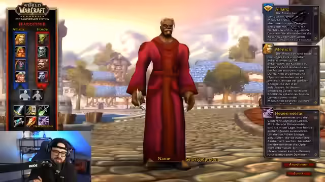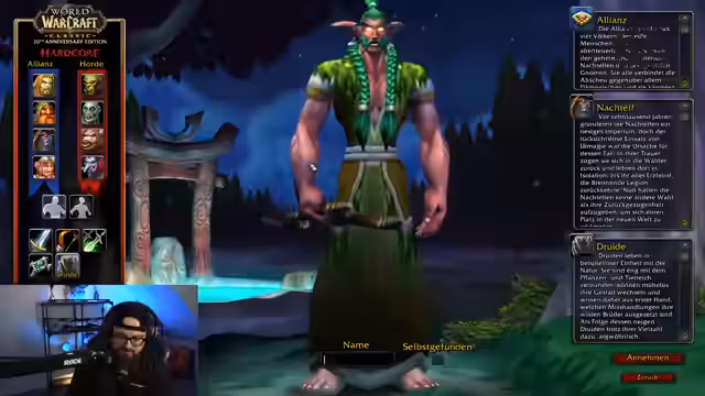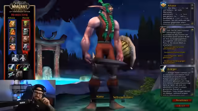 04:28:11Ausführliche Einführung für absolute WoW-Neulinge, wie das Spiel korrekt gestartet wird. Detaillierte Erklärung der Battle.net-Oberfläche mit Fokus auf die Auswahl von World of Warcraft Classic (nicht Retail oder andere Editionen). Der Streamer demonstriert die Serverauswahl und empfiehlt für das HC-Event explizit den Server 'Soulseeker' (Hardcore-PvE), während er von PvP-Servern abrät. Es folgt eine Anleitung zur Charaktererstellung, bei der betont wird, wie entscheidend die Wahl der Rasse und Klasse für die ersten Spielwochen ist. Besonders hervorgehoben wird, dass diese Entscheidung den gesamten Spielerlebnisweg prägt.