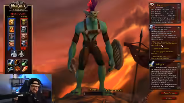 02:02:58Die anfängliche Zuneigung zur Allianz scheint der Streamer überdacht zu haben. Er verkündet mit großer Begeisterung und Verve, dass er sich für die Fraktion der Horde entscheiden werde. Er begründet dies damit, dass ihm die Rassen- und Klassen-Kombinationen der Horde, wie z.B. Trollkrieger, deutlich mehr Spaß machen. Diese persönliche Wahl steht im direkten Kontrast zu seiner früheren, offensichtlich tiefen Verbundenheit mit der Allianz.