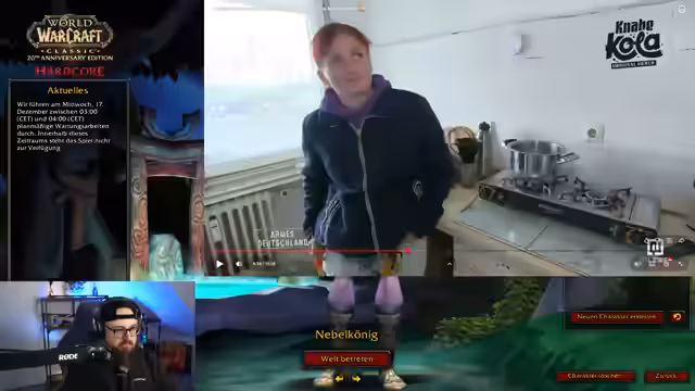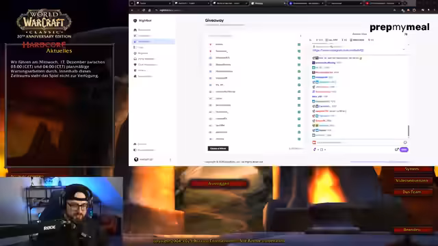 07:33:30Der Streamer kündigt sein großes WoW-HC-Event vom 27.12. an, das 16 Tage live sein und Giveaways im Wert von 25.000 Euro beinhalten wird. Er selbst tritt als Teilnehmer an, um seine WoW-Fähigkeiten unter Beweis zu stellen. Besonders hervorgehoben werden die Teilnehmer Kevin und Kutscher: Kevin wird als absoluter Top-Kandidat für Level 60 gelobt, während Kutscher als Compilation-Fall eingestuft wird, da er trotz fehlender WoW-Erfahrung durch sein Durchhaltevermögen auffällt. Zudem wird die Teilnahme von Noriax kritisch kommentiert.