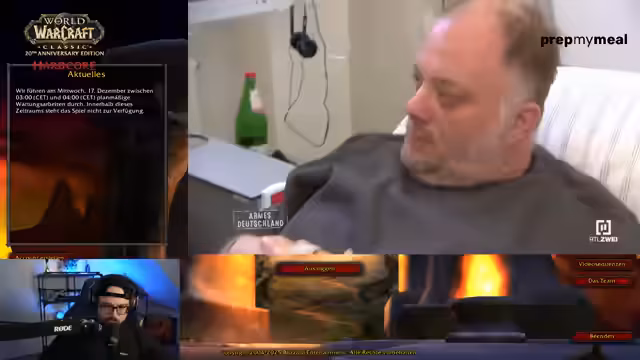 06:47:13Der Streamer beobachtet, wie Chef Strobel in WoW Hardcore stirbt, und kritisiert dessen unvorbereitete Spielweise (z. B. Double-Fiery-Waffe statt Schild). Er hinterfragt, warum der bekannte LoL-Spieler Frederik beim HC-Event nur teilnehmen würde, wenn er genug Zuschauer hat, und bezeichnet dies als unvereinbar mit der Community-Philosophie. Parodierend prophezeit er Frederiks Scheitern.