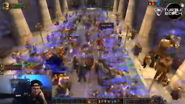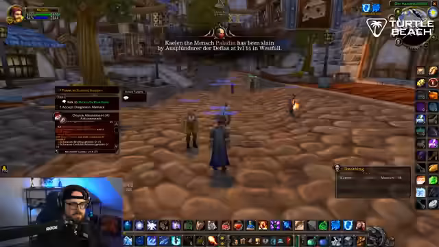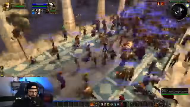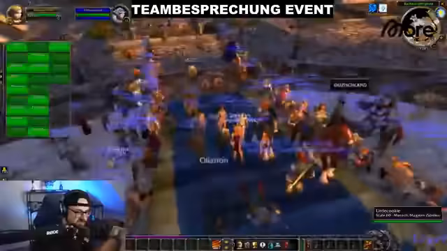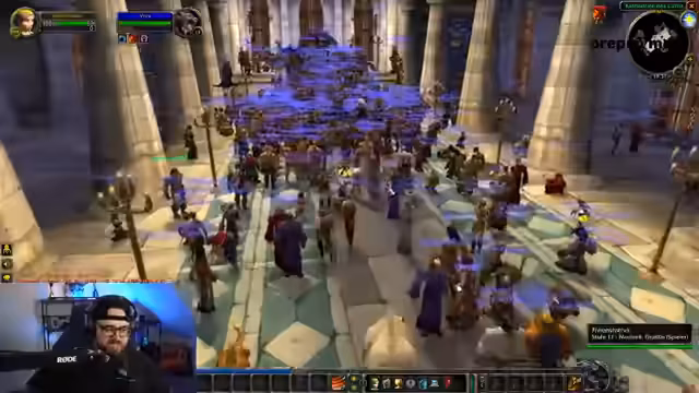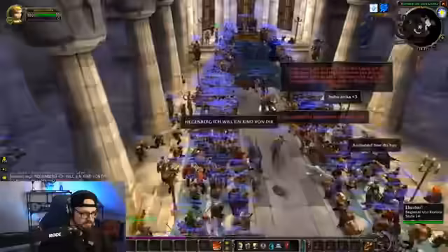 10:02:00Der Streamer erreicht Stormwind und ist überwältigt von der Masse an Spielern, die sich im Eingangsbereich versammelt haben. Es entsteht sofortiges Chaos mit Lag-Problemen, da die Server kaputt sind und Layer überlastet sind. Die Gruppe diskutiert Organisationsprobleme, darunter den RP-Walk, das Vermeiden von Rasenflächen und die Koordination von Bewegungen in der Menschenhauptstadt. Ein Spieler namens Stirb Wieland fällt auf, und es gibt Diskussionen über Layer-Zugehörigkeit. Die Stimmung ist euphorisch, aber technisch problematisch, mit Aufrufen, In-Game-Musik auf Maximum zu stellen.