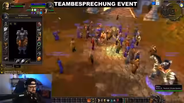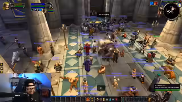 10:02:29Die Teilnehmer starten einen organisierten Rollenspiel-Walk durch Stormwind. Der Streamer gibt klare Anweisungen zur Bewegung und Positionierung, um das Chaos zu minimieren und eine beeindruckende visuelle Darstellung zu erzeugen. Der massive Zuspruch führt zu Server-Laggs und es kommt zu unvorhergesehenen Todesfällen unter den Teilnehmern, was den Prozess unterbricht.
